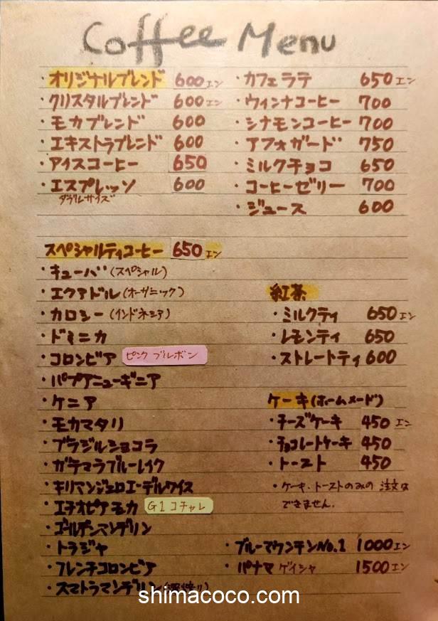 今回は「クリスタルブレンド」と「チョコレートケーキ」を注文しました。