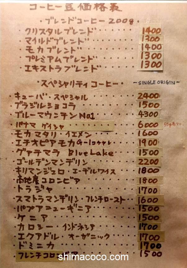 今回はまだ飲んだことがない「モカブレンド」を注文しました。