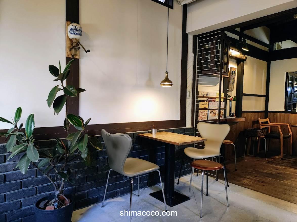 お店の奥側のスペースには二人掛けのテーブル席があります。