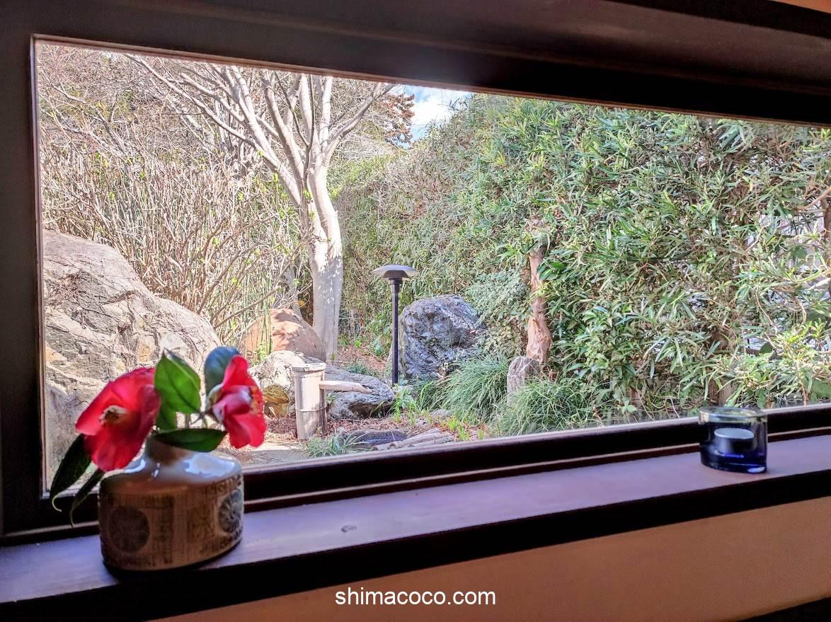 カウンター席に座ると目の前の小窓から裏庭が見えるようになっています。