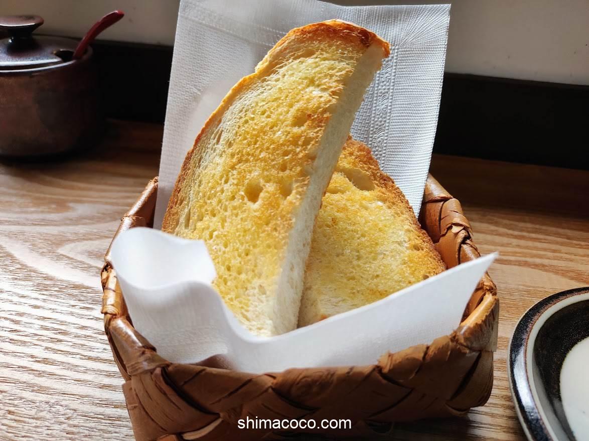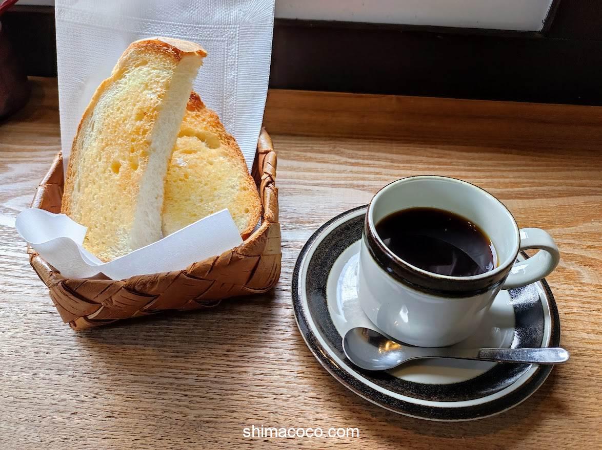バターが塗られたトーストとコーヒーはシンプルかつ定番の組み合わせです。