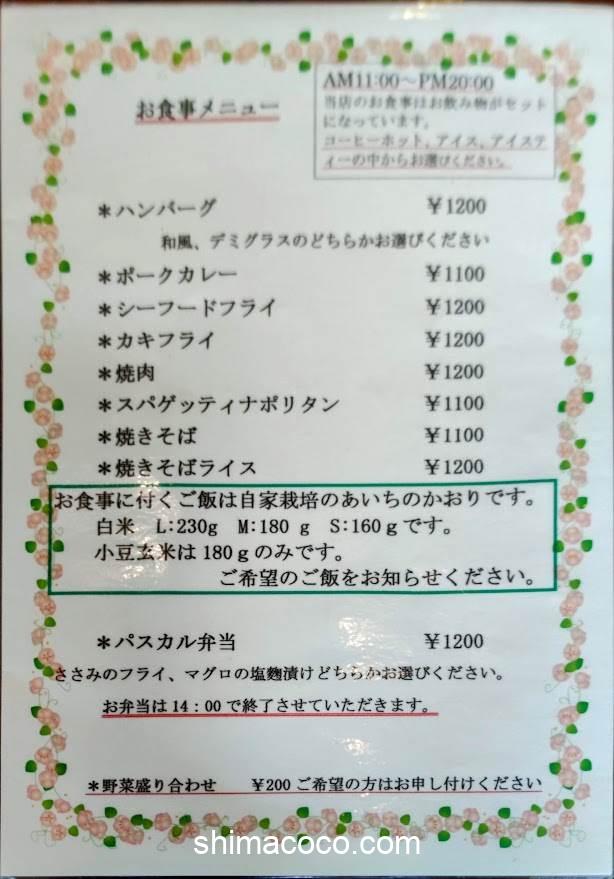 葦(あし)の食事メニューのライス(白米)は3サイズから選べます。