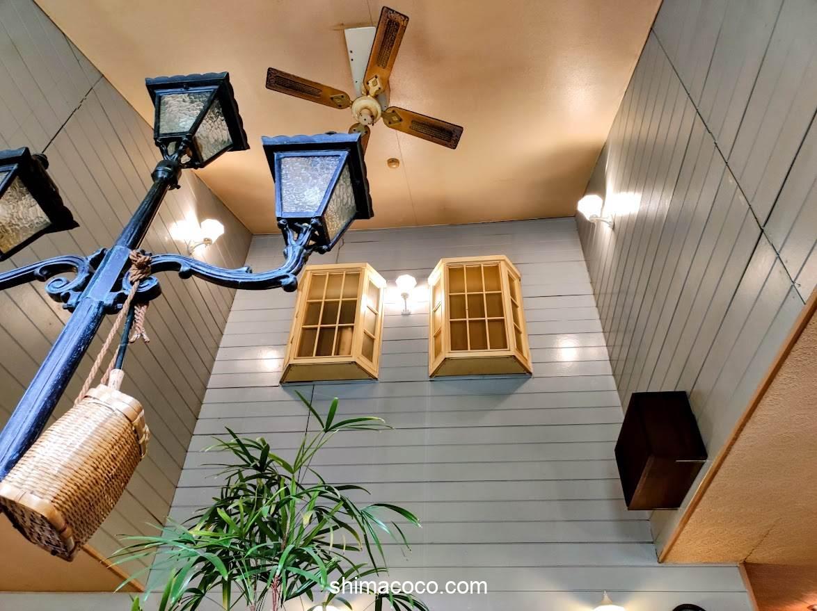 天井のシーリングファンがノスタルジックな空間を演出していて素敵。