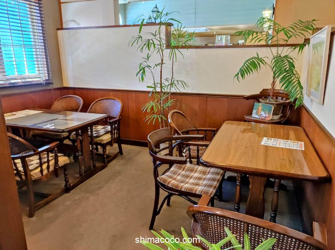 仕切りの奥側にもテーブル席あり(駐車場側)