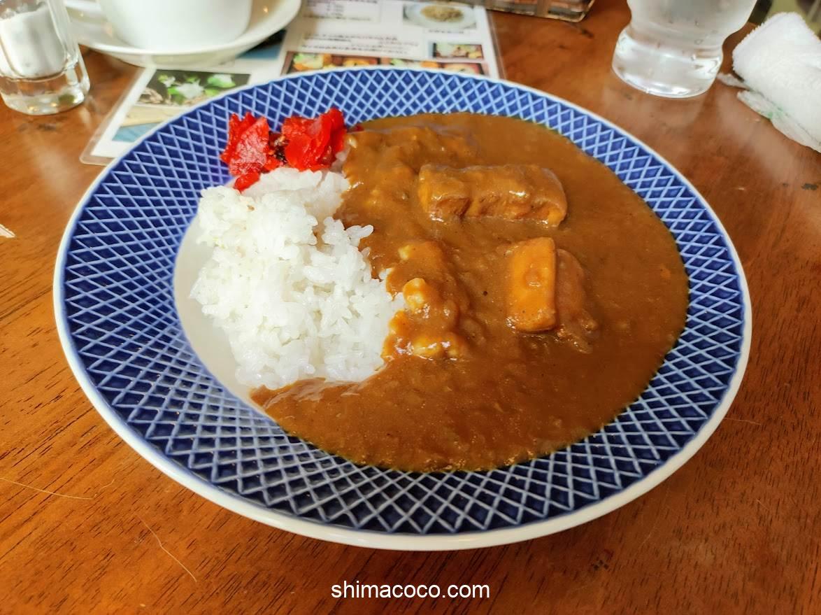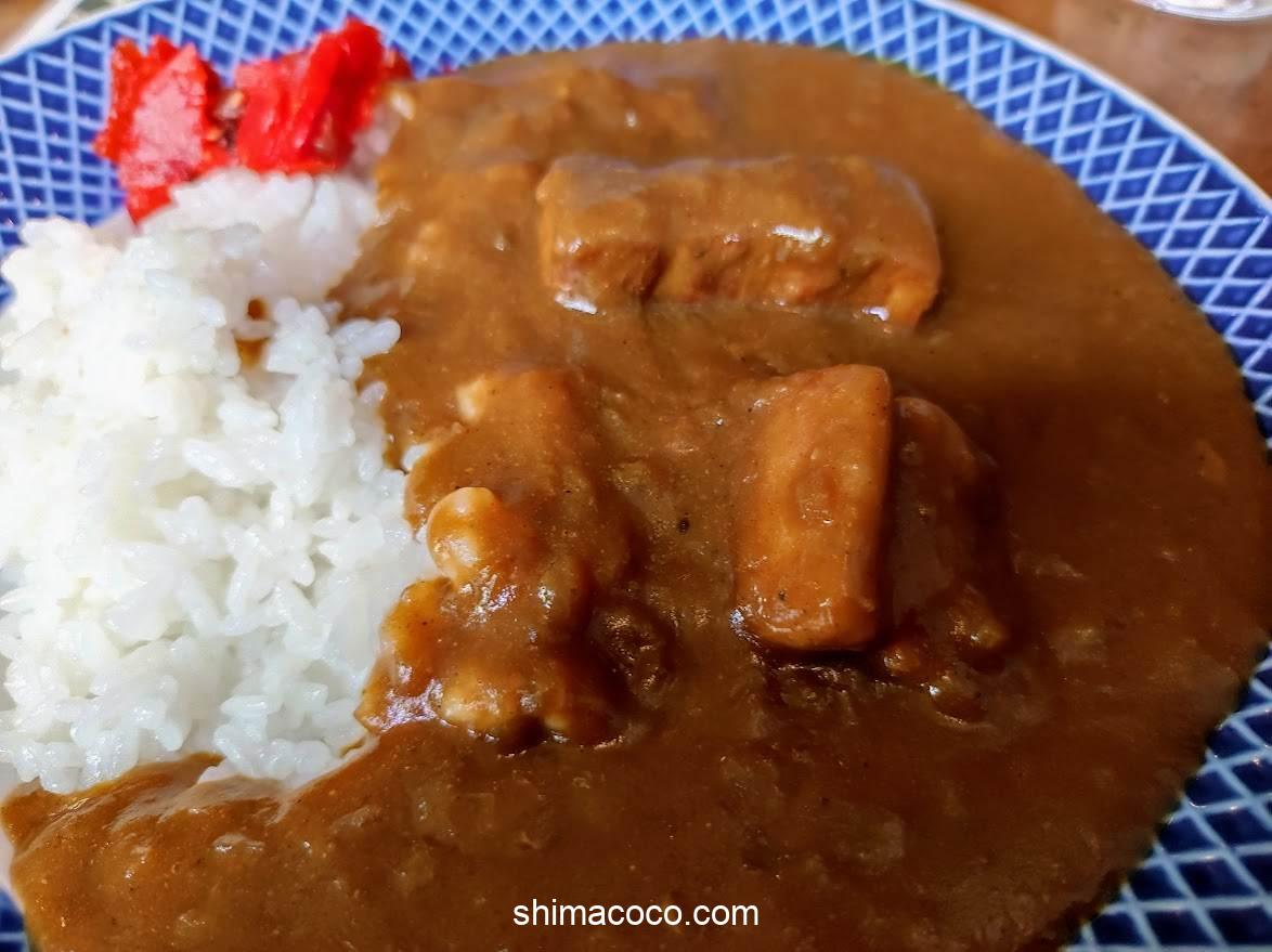 ポークカレーには豚の角煮のような大きなお肉が2つ入っていました。