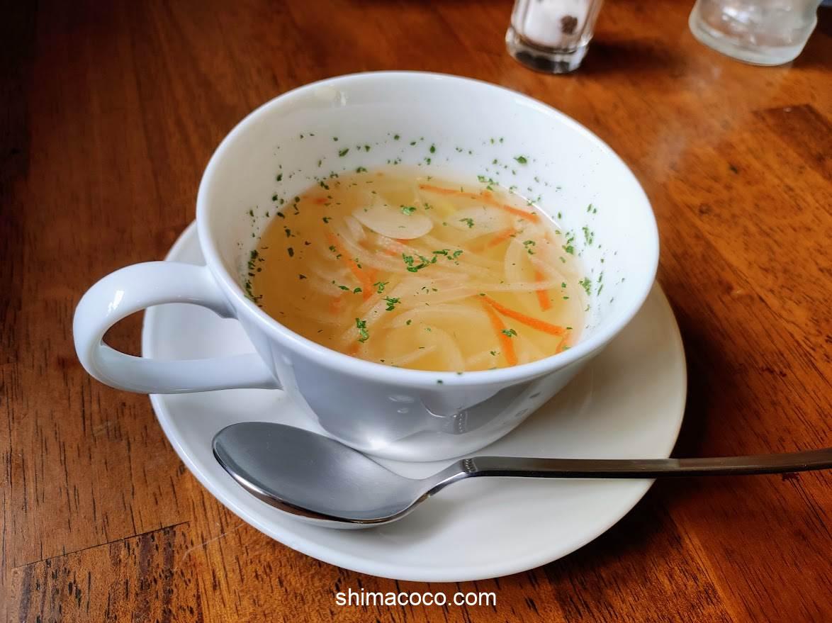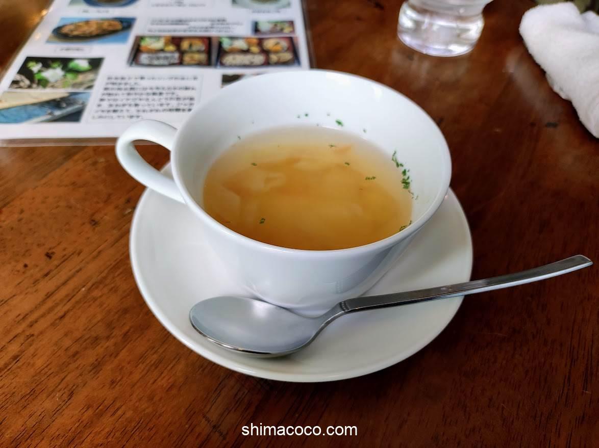 食前に温かいスープを飲んでちょっとひとやすみ。