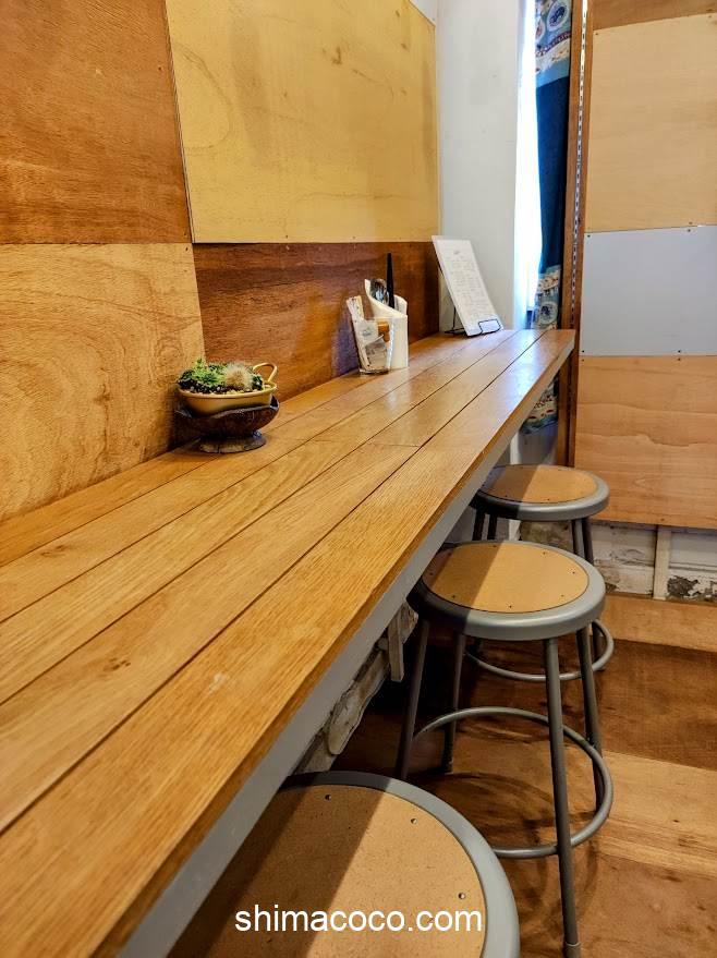 お店の奥の壁側にカウンター席があります。