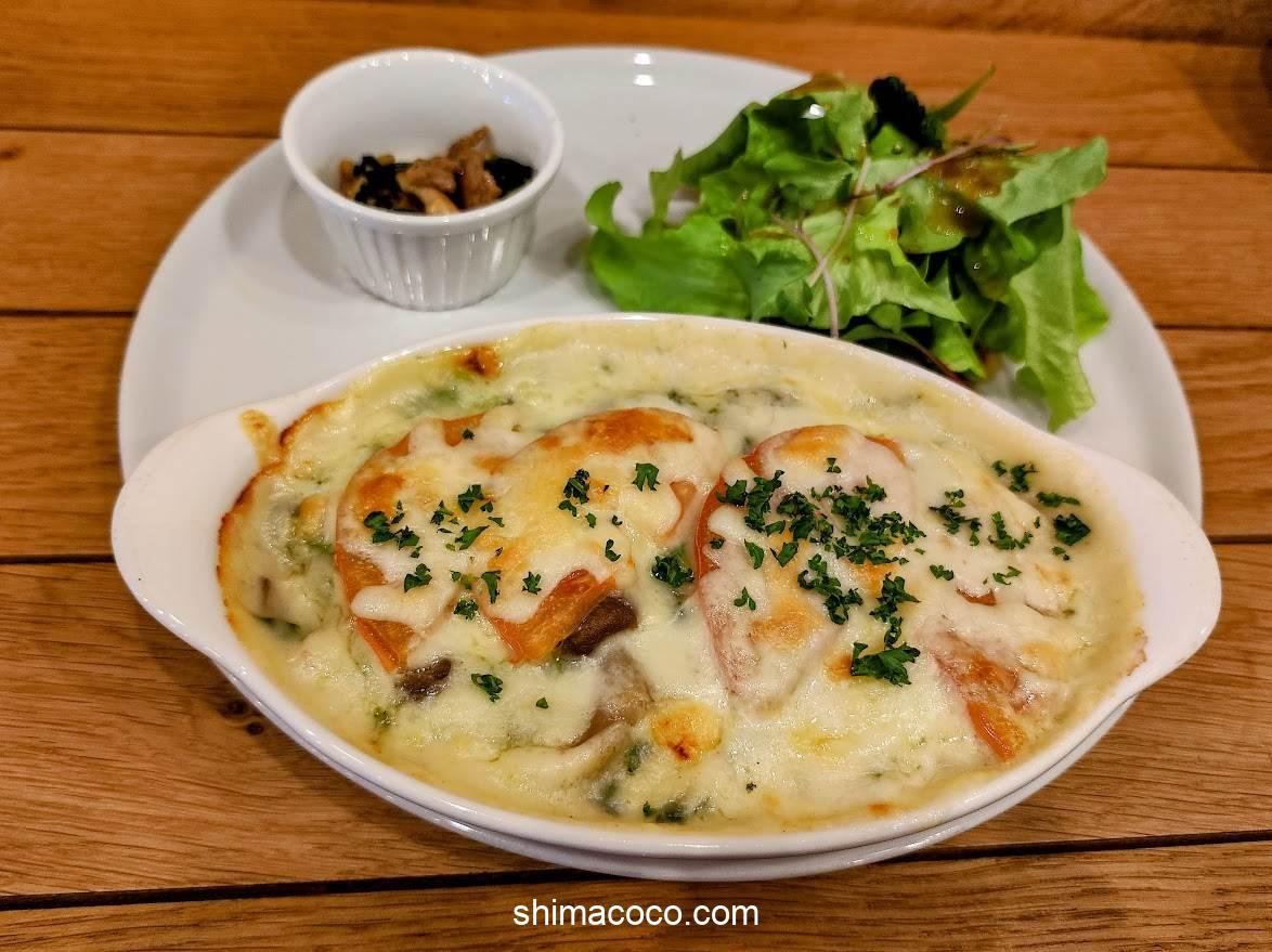 メイン料理のホワイトソースドリアのお出ましです。