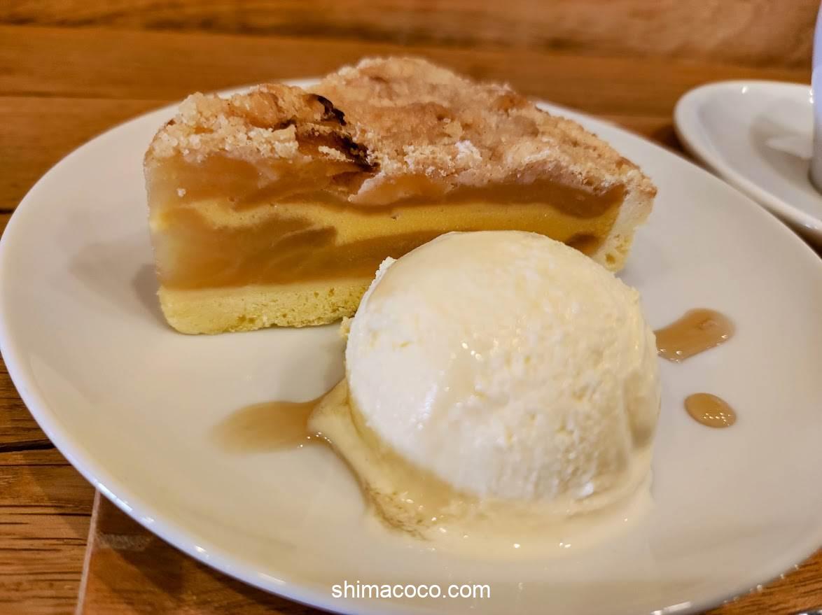「甘さ控えめのアップルタルト」と「濃厚なバニラアイス」の組み合わせはバランスがよく上品な味わい。