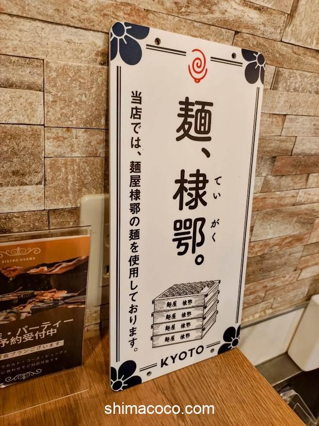 カウンター席に麺屋棣鄂(ていがく)の案内ポップが置かれていました。