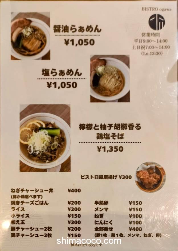 BISTRO ogawa(ビストロオガワ)は朝ラーからディナーまで幅広い時間帯で営業されています。