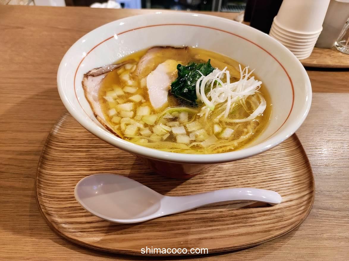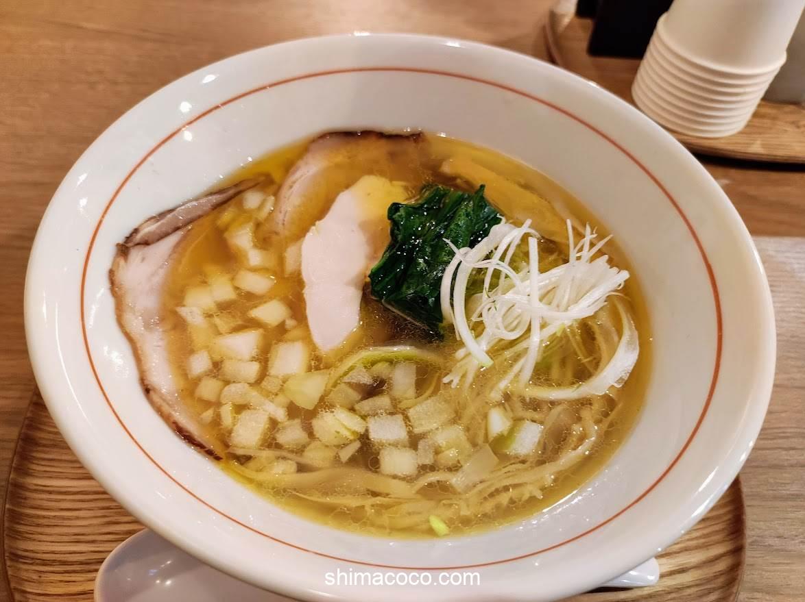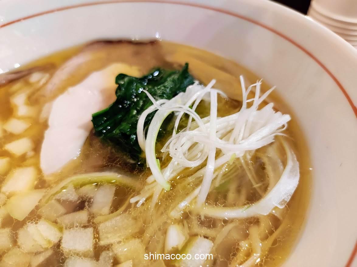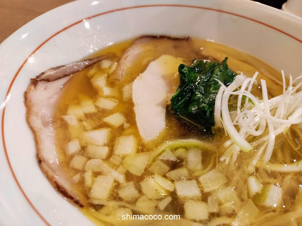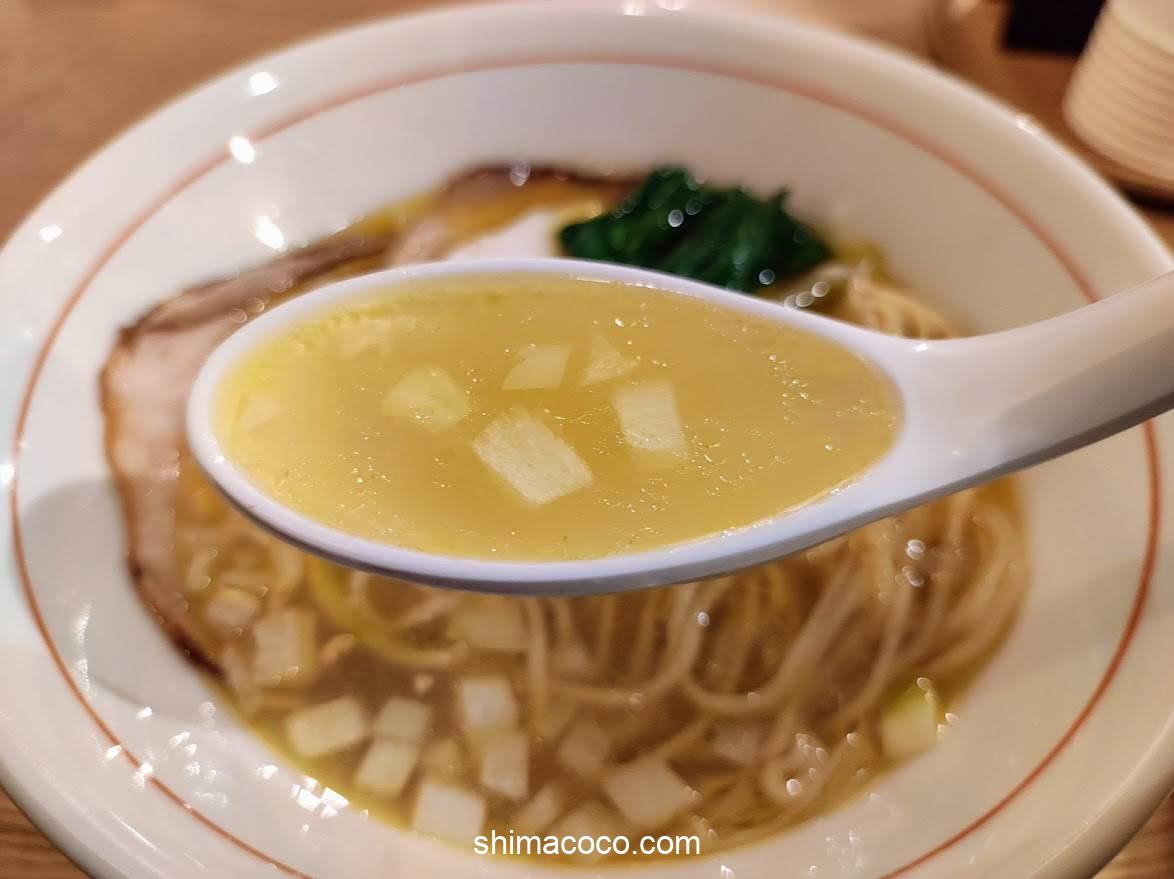 塩らぁめんのスープは風味豊かなスッキリした味わいでとても美味しい。