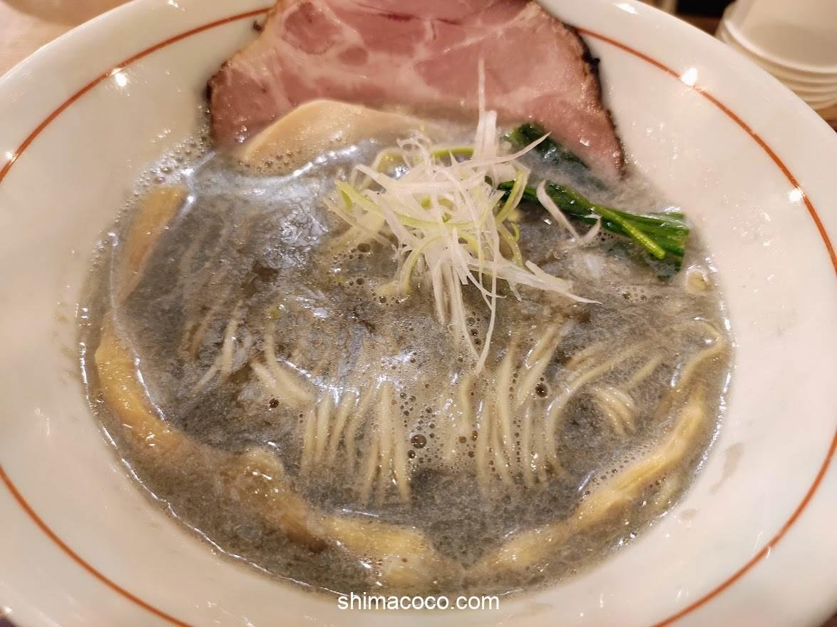 見た目がグレー(灰色)の濃厚な煮干しスープが特徴的