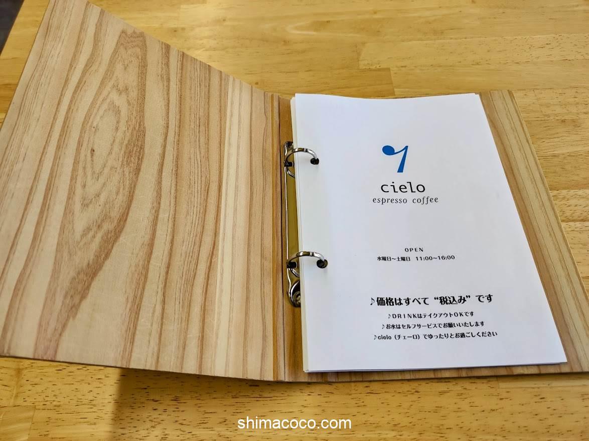 cielo espresso coffee(チェーロ エスプレッソ コーヒー)のメニューをご紹介します。