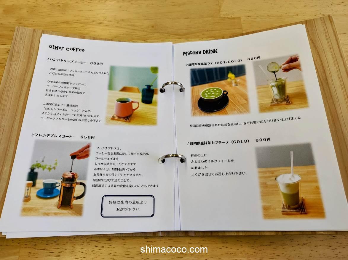 ハンドドリップコーヒー・フレンチプレスコーヒー・抹茶ラテ・抹茶カプチーノ