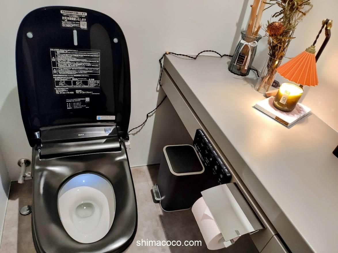 LIXIL(INAX)のタンクレストイレ「サティス」のブラックカラーモデルを初めて見たのでちょっとビックリ。