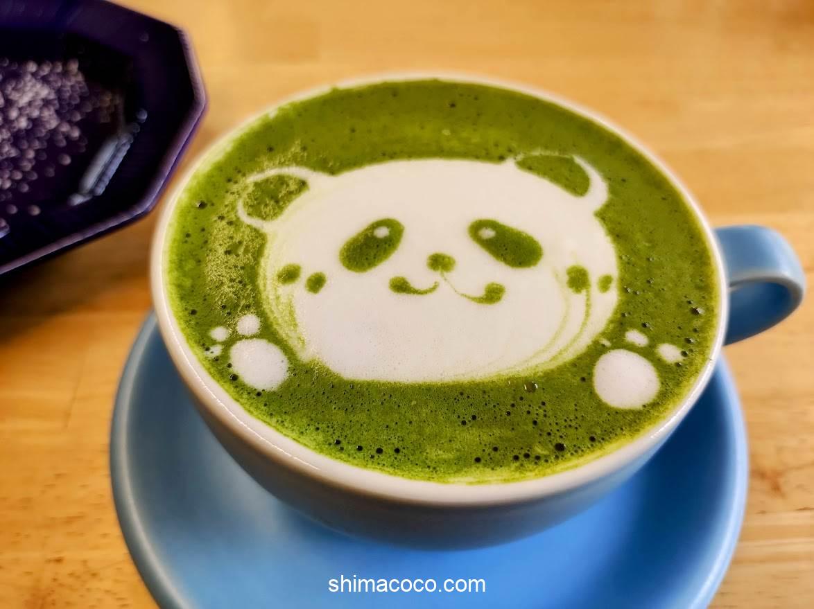 今回の抹茶ラテのラテアートは可愛いパンダでした。