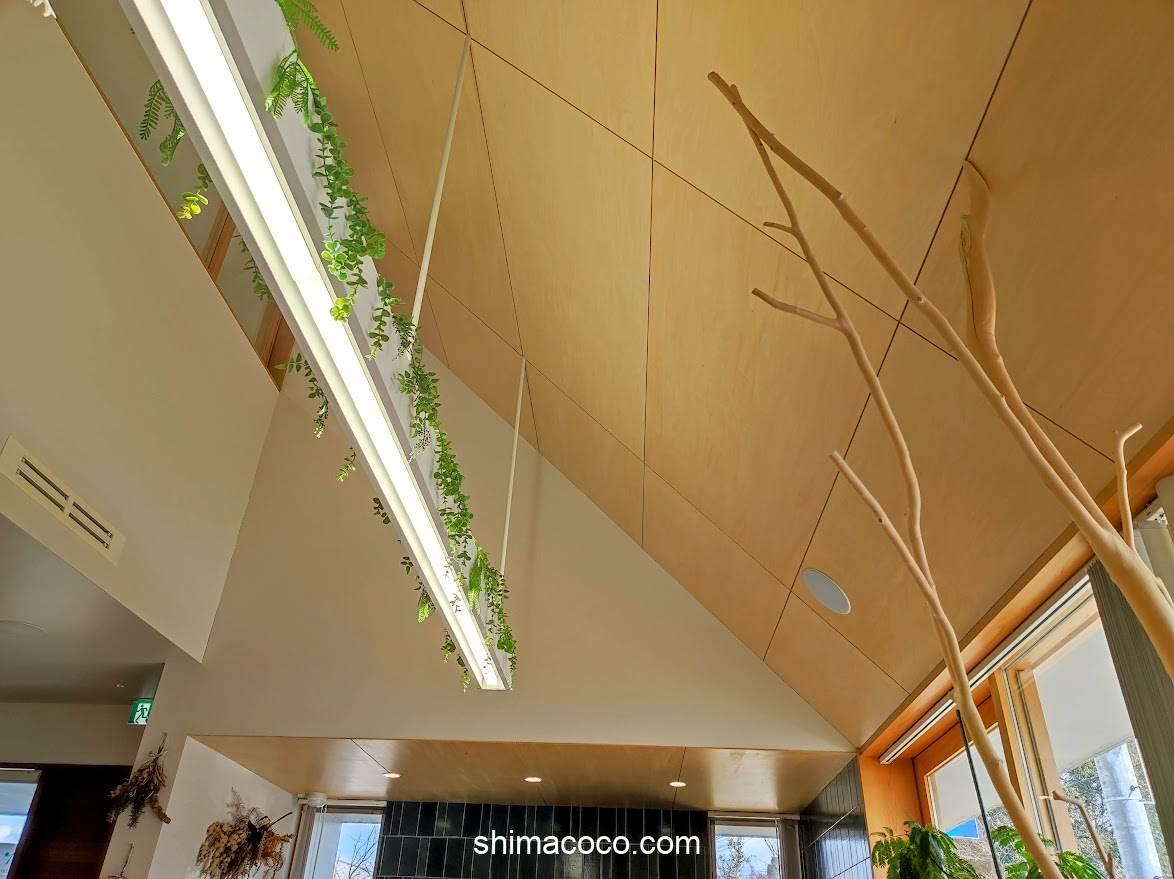 人工観葉植物(だと思うけど違うかもしれない)をライトに彩ってナチュラルな雰囲気が感じられて良い感じ。