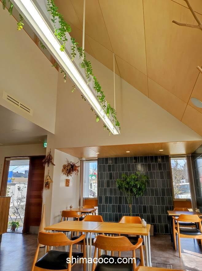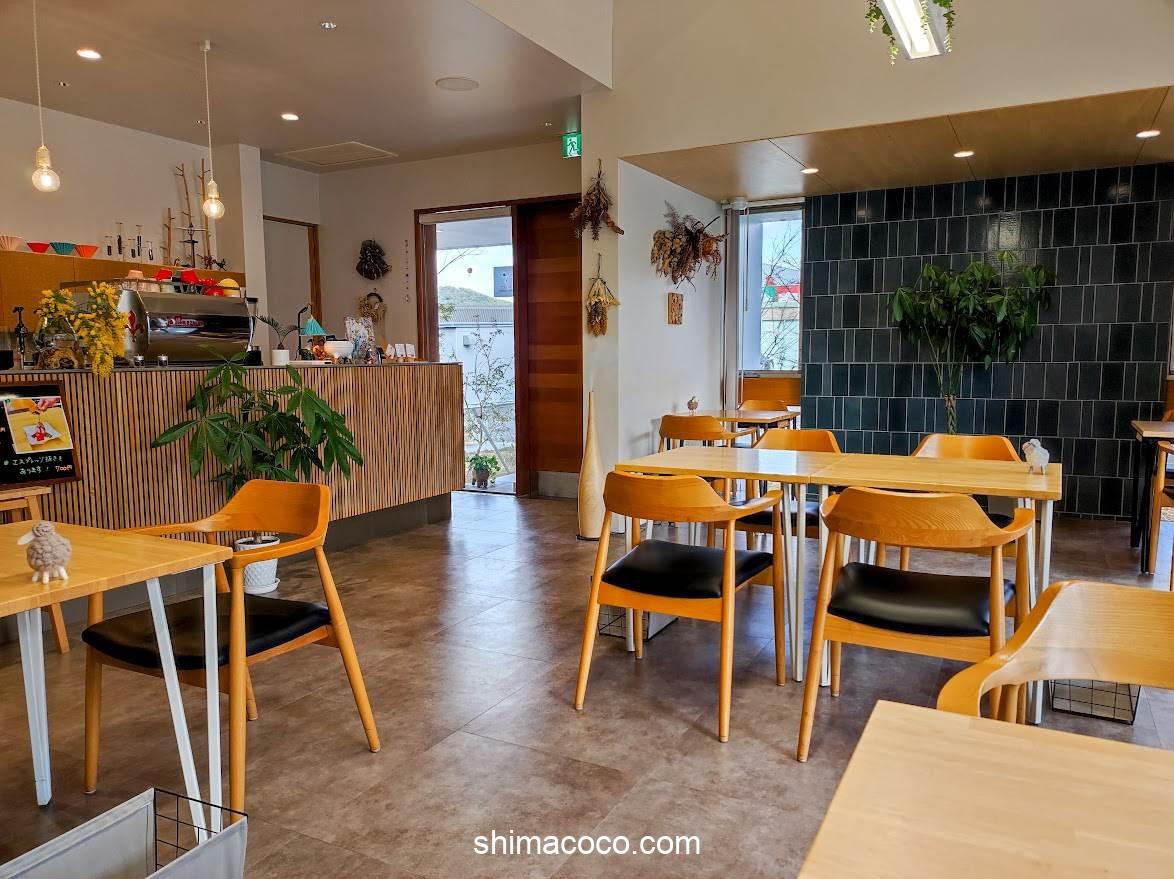 ドアを入るとまず最初にキッチンカウンターがあって、その先にテーブル席があるスペースが広がります。