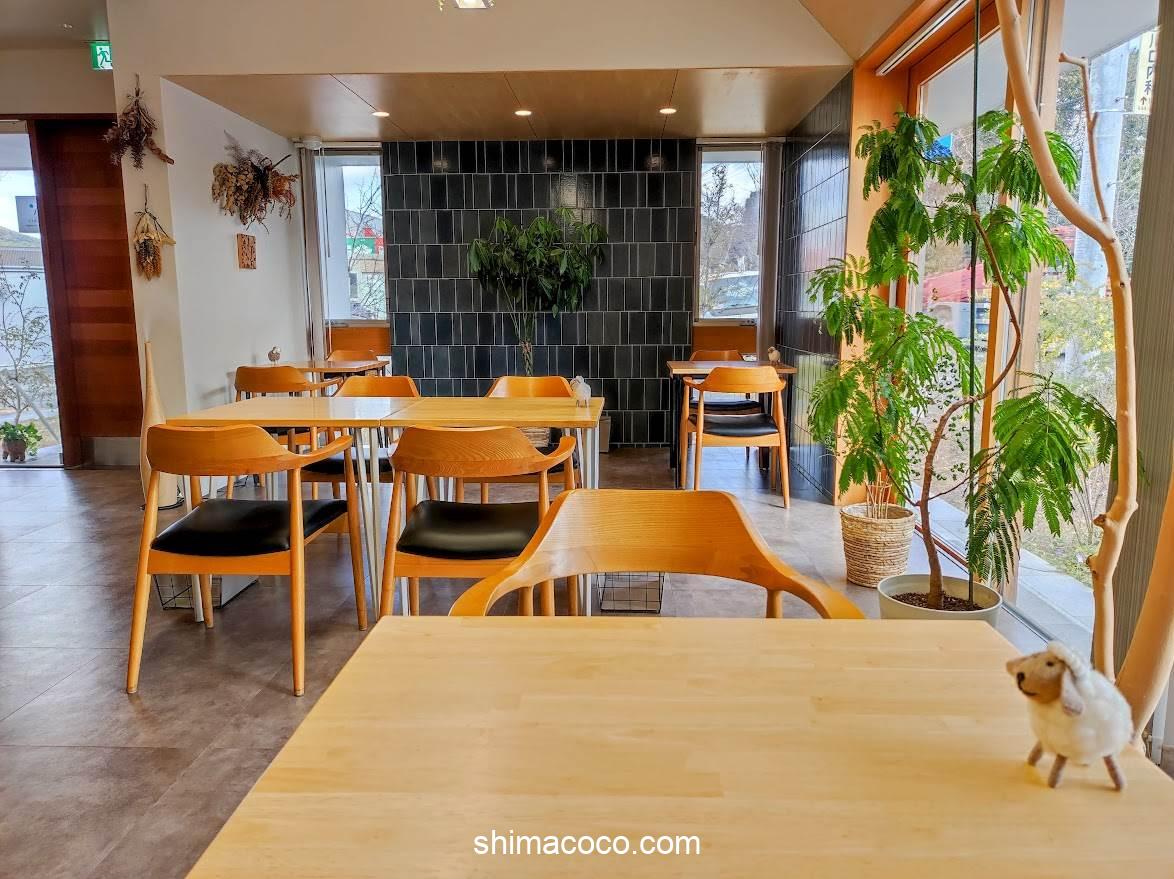4人掛けのテーブル席が1つ、2人掛けのテーブル席が4つ