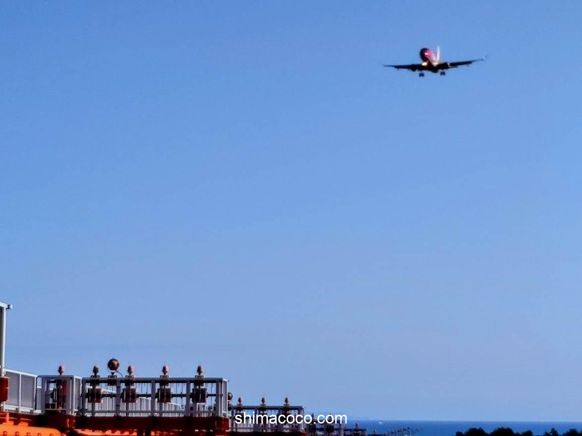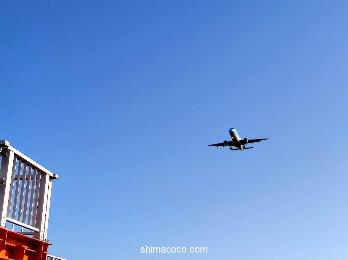 着陸するときは飛行機が遠くから迫ってきて、自分の真上を通り過ぎていきます(迫力満点)。