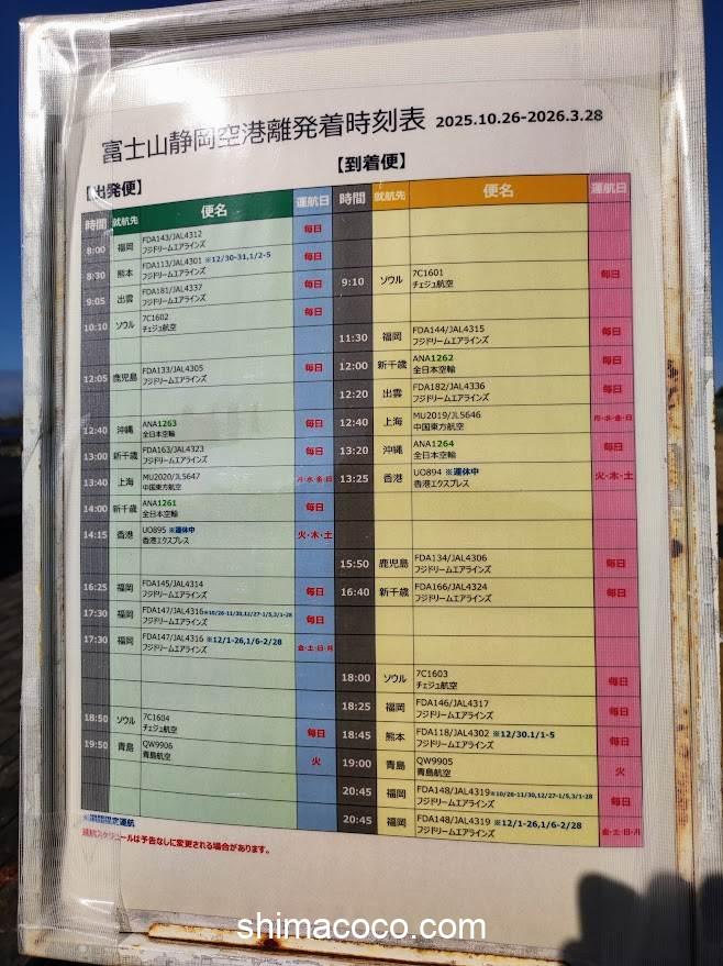 広場内にも「離発着時刻表」があるので、それを見て確認することもできます。