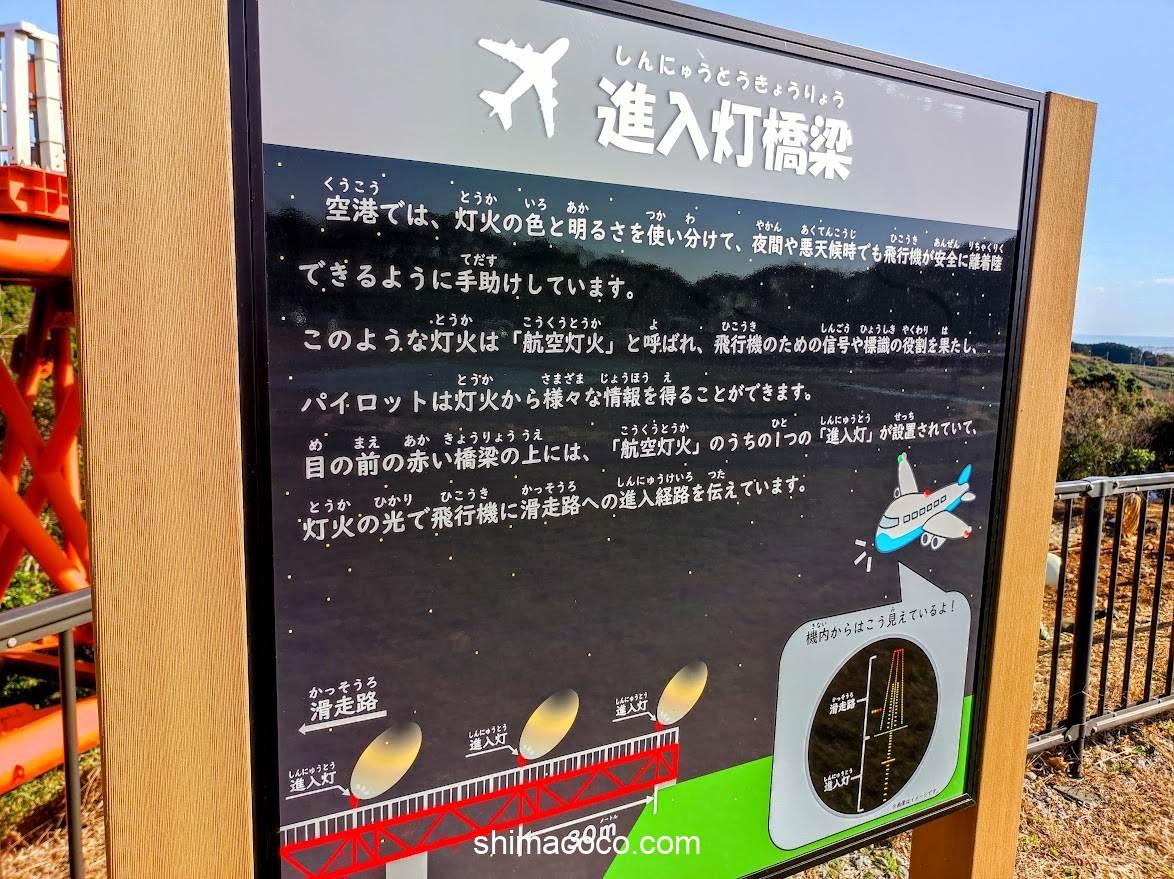 目の前の赤い橋梁の上には、「航空灯火」のうちの1つの「進入灯」が設置されていて、灯火の光で飛行機に滑走路への進入経路を伝えています。