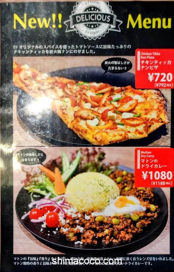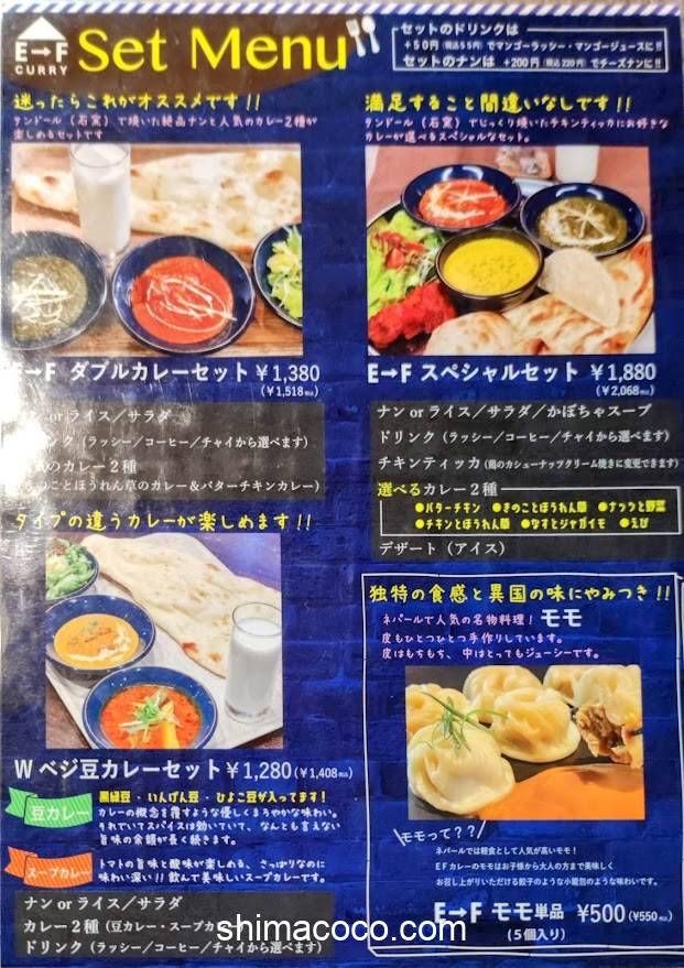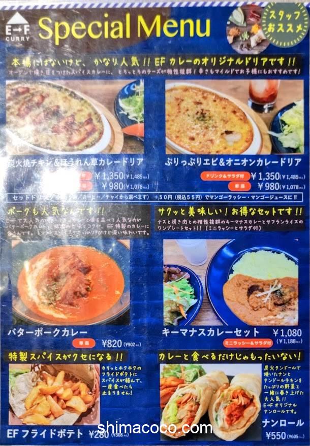 E→F CURRY(イーエフカレー)蓮華寺池店のメニューをご紹介します。