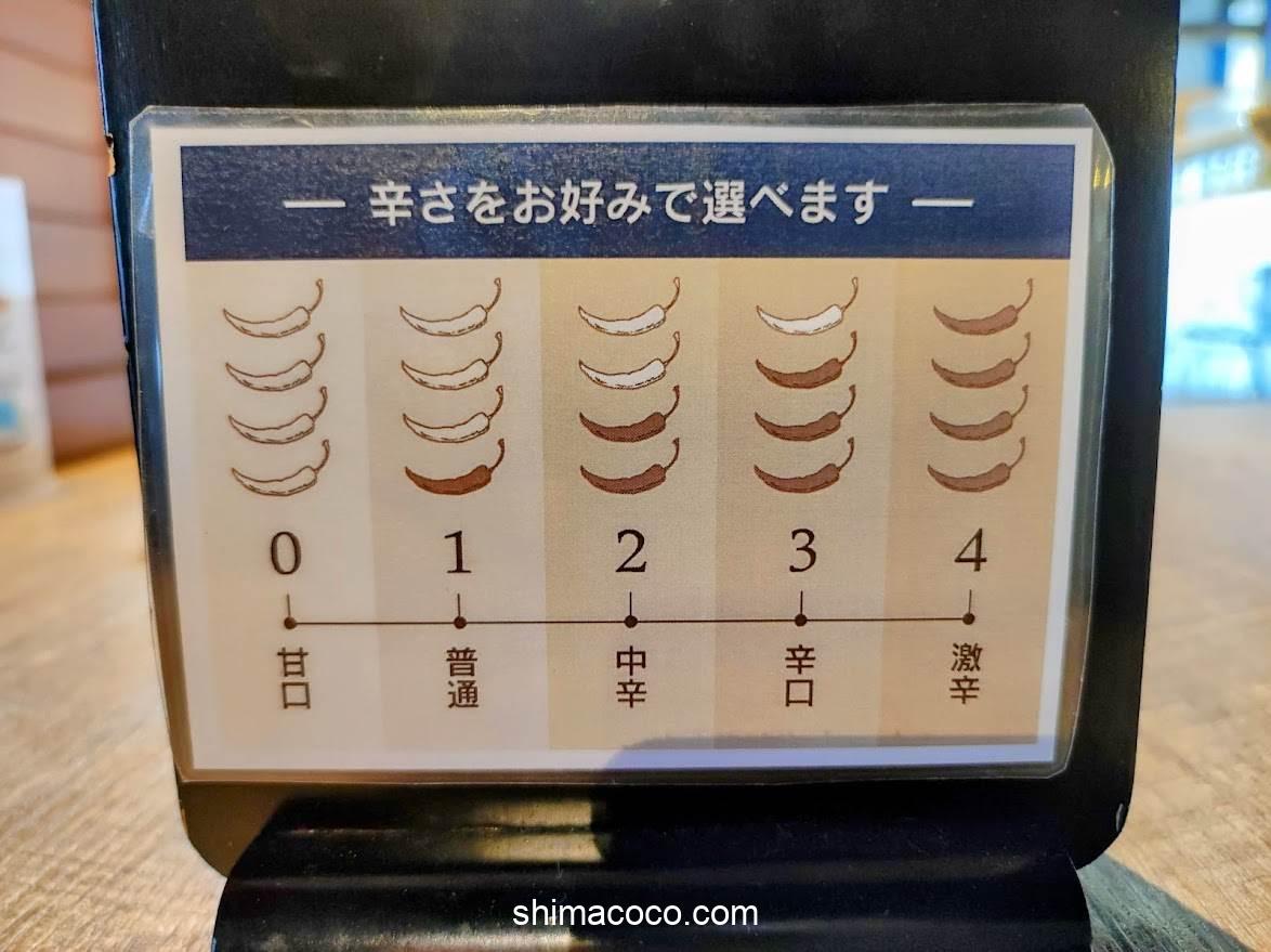 カレーの辛さは「甘口」から「激辛」まで5段階で選べる