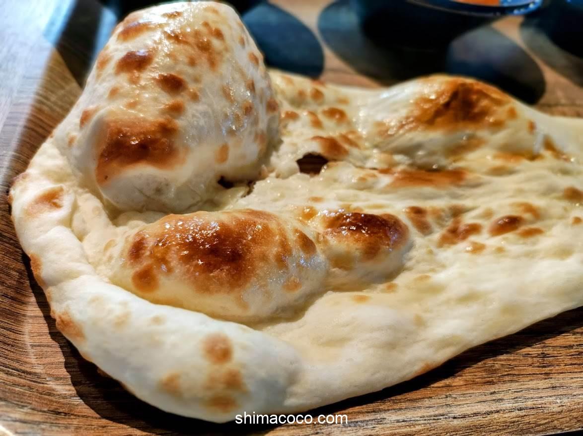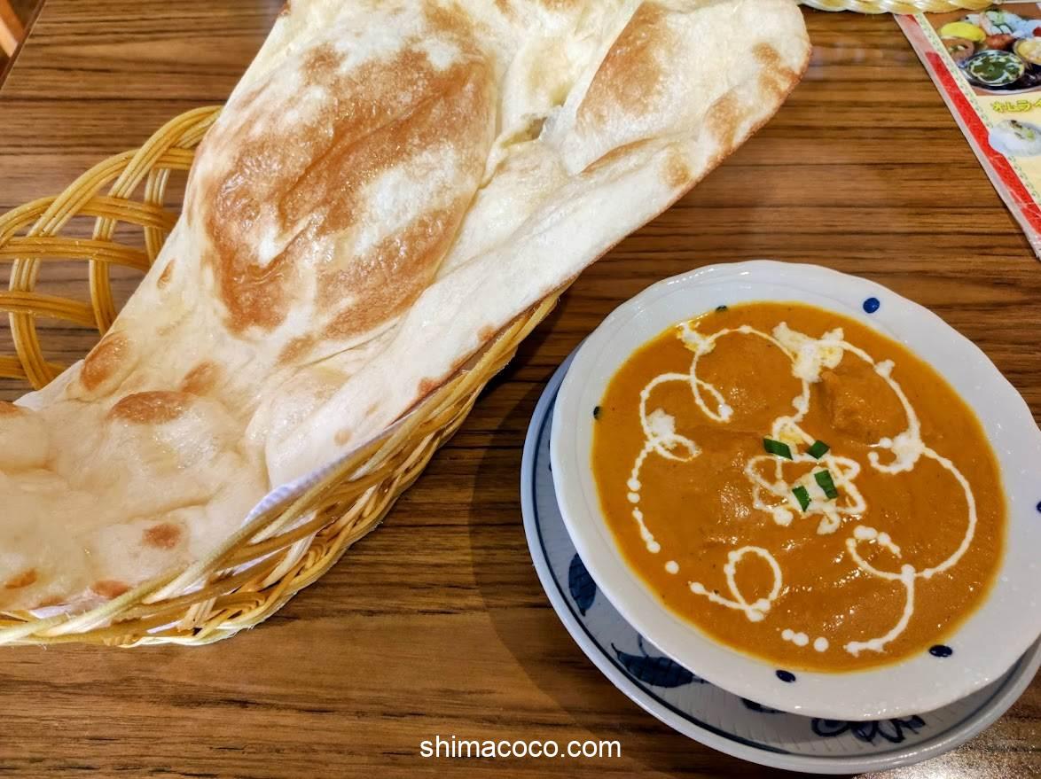 焼き立てアツアツの大きなナンは見た目のインパクトが強烈です。