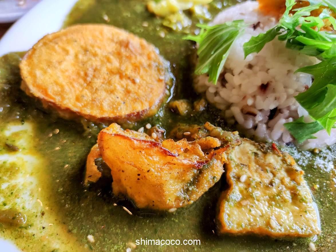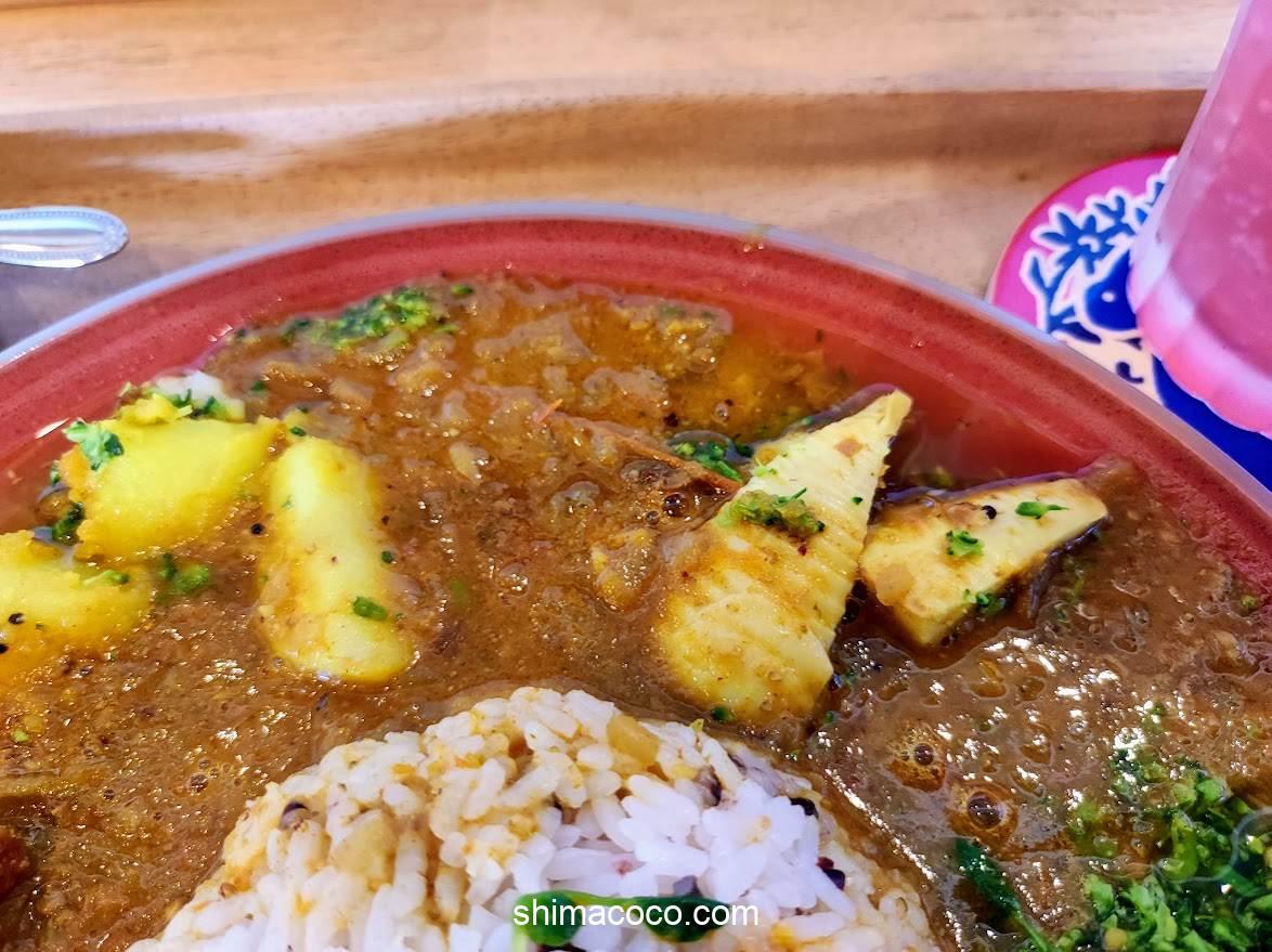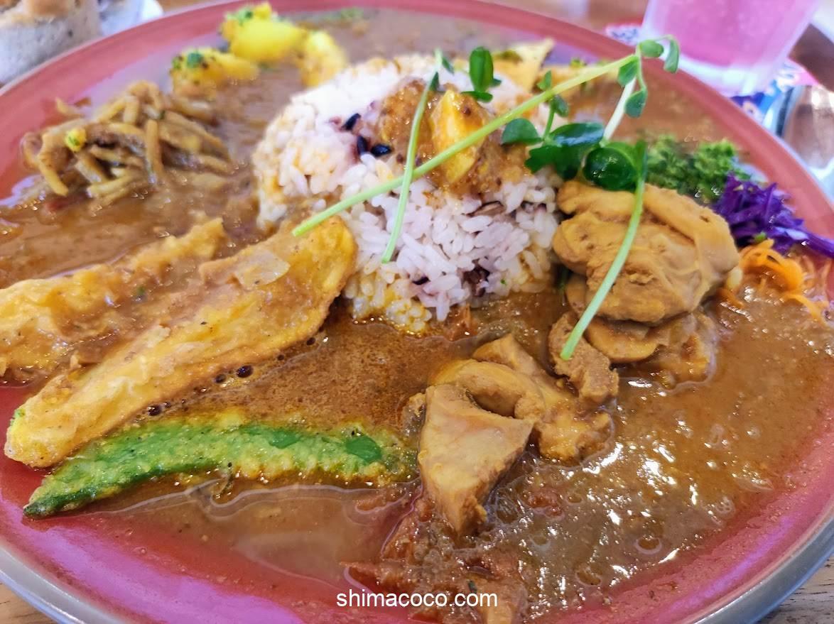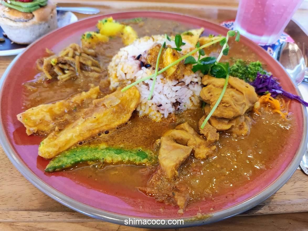 春の薬膳カレーは具材が美しく盛りつけされています。
