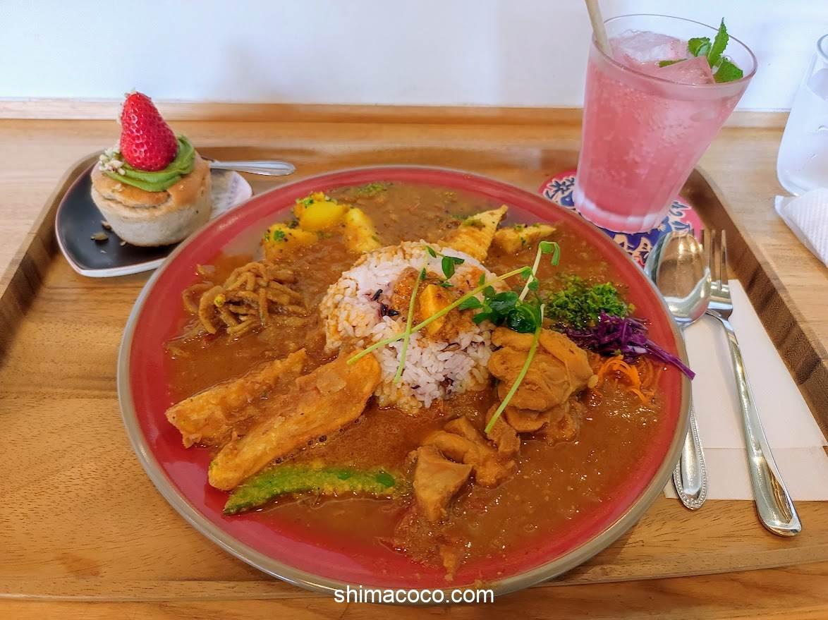 オウム食堂エイミーのカレー屋は、ヘルシーで美味しい薬膳カレーが人気なので「春の薬膳カレー」」にしました。
