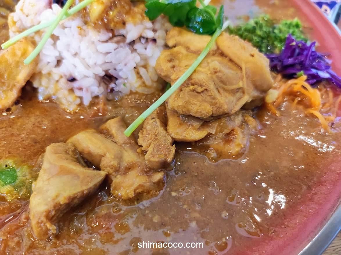 メインの具材にゴロッとした大きな鶏肉があり、春を代表する食材のタケノコも入っていました。