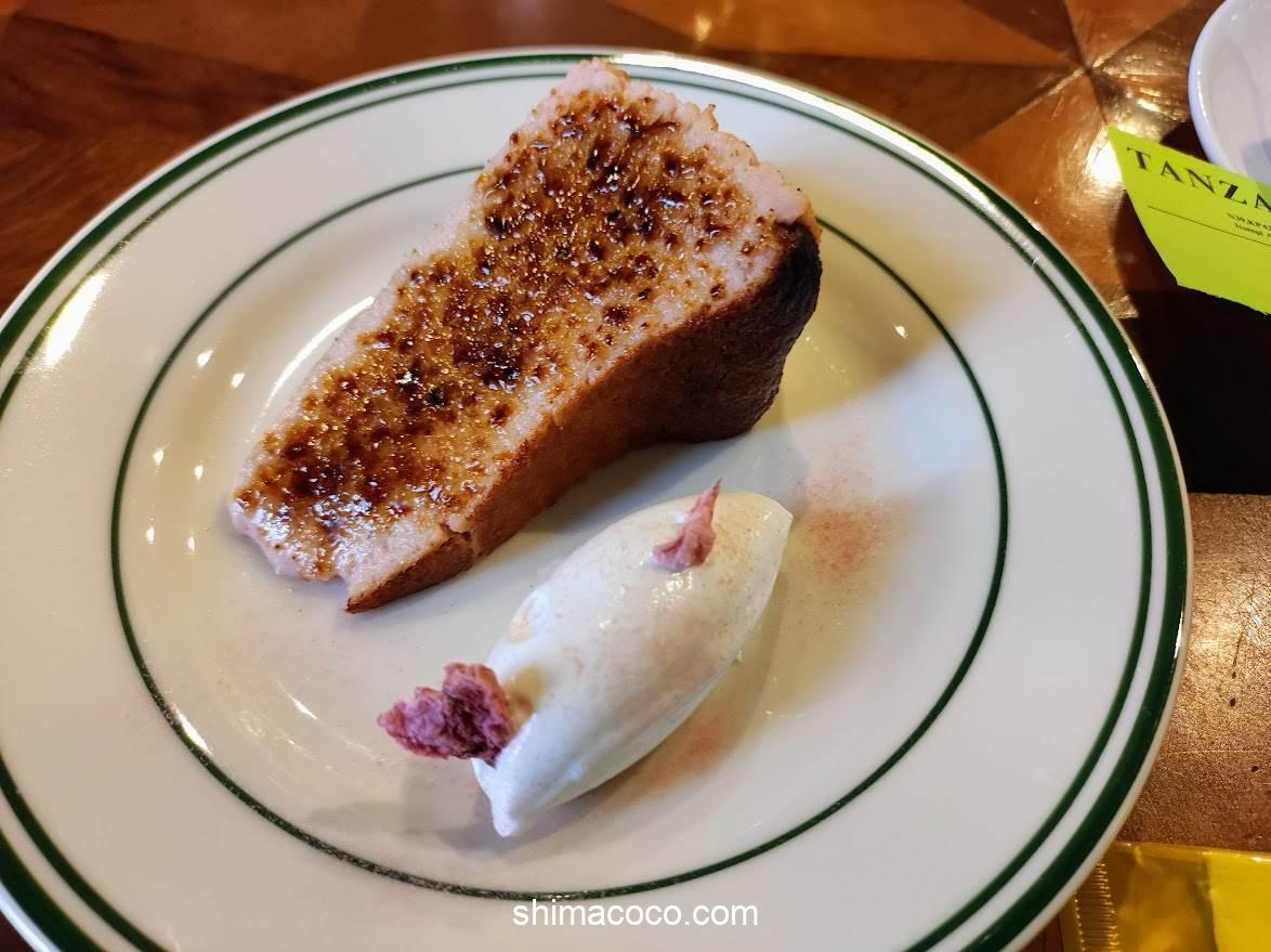 クリームに添えられた「桜の花の塩漬け」(だと思う)のしょっぱさが良い感じのアクセントに。