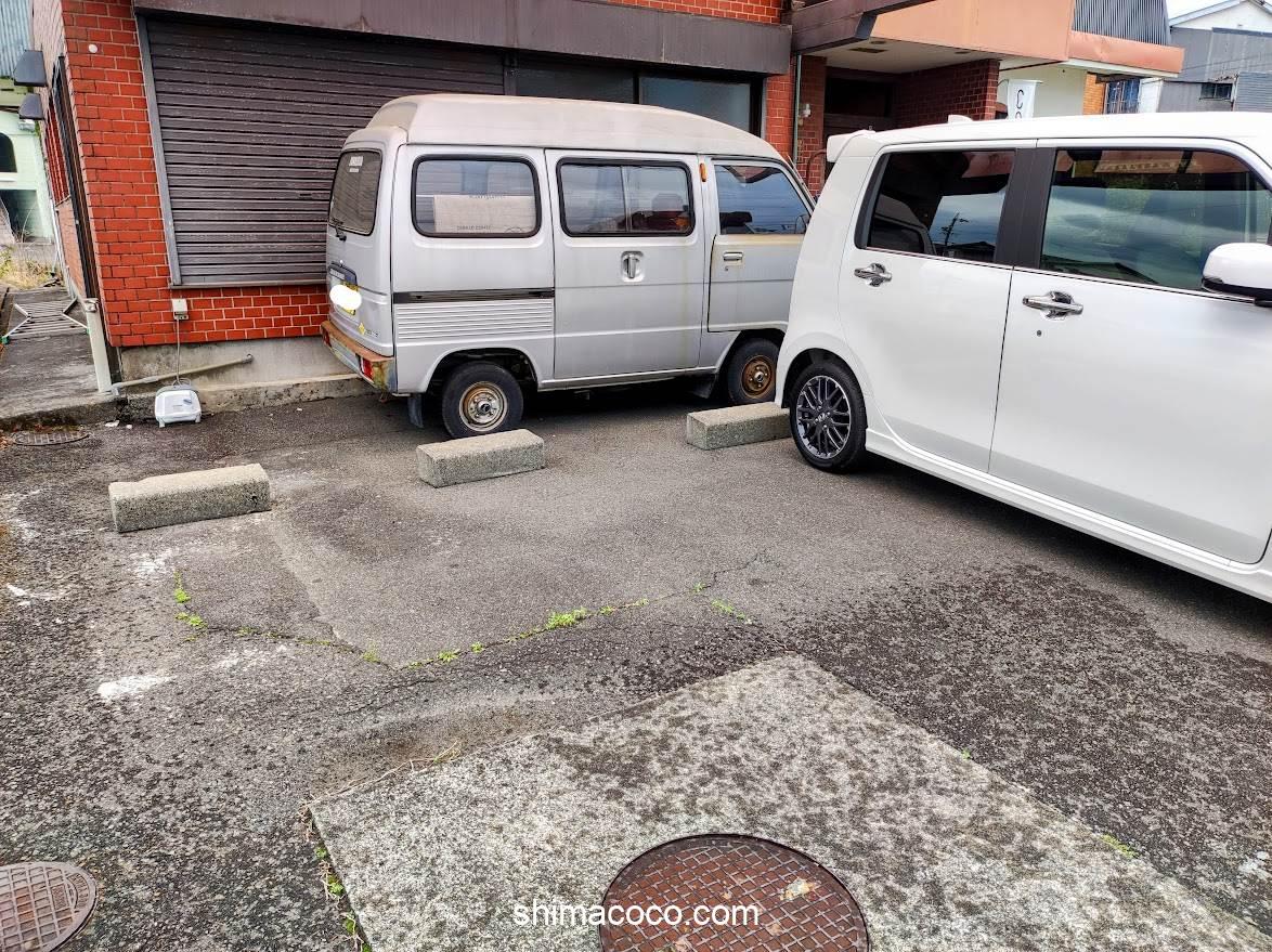 2台分のスペースはタイヤ止めあり