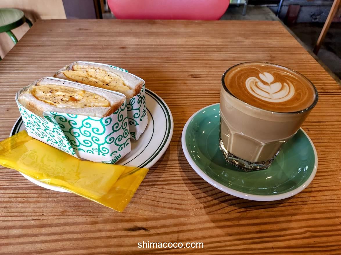 カフェラテ:650円、たまごサンド:750円