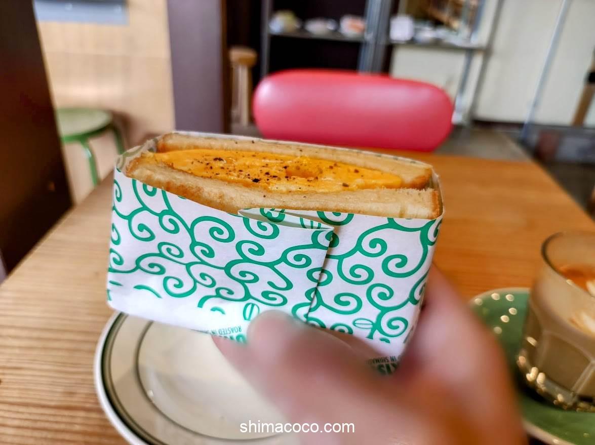 たまごサンドは熱々の焼き立てで提供されます。