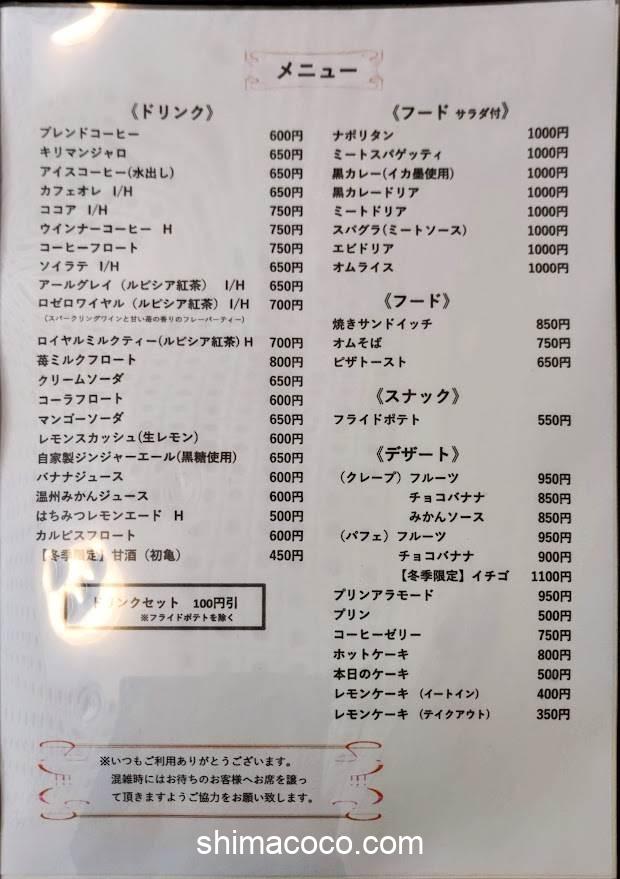 喫茶ボンジュのメニューをご紹介します。