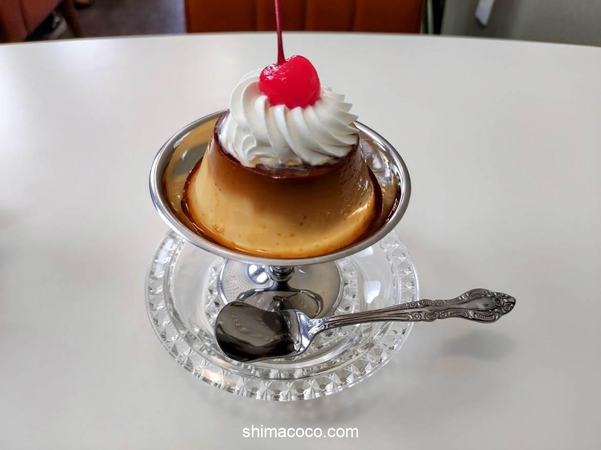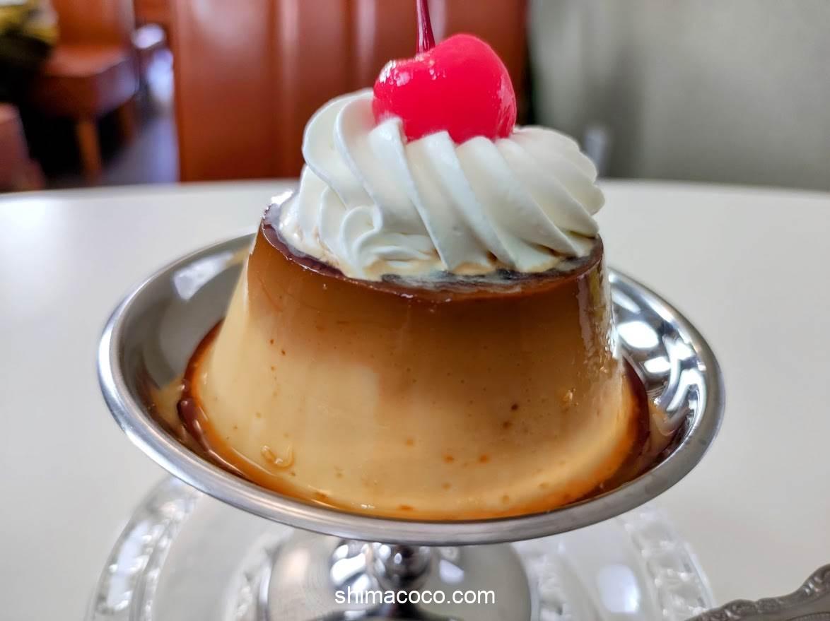 プリンは昔ながらのしっかりとした固めの食感が特徴的。