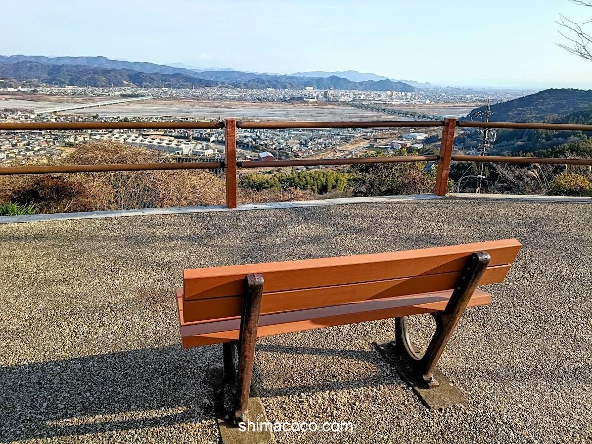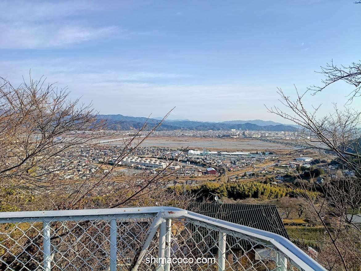 眼下に広がる金谷や島田の街並み、そして雄大な大井川
