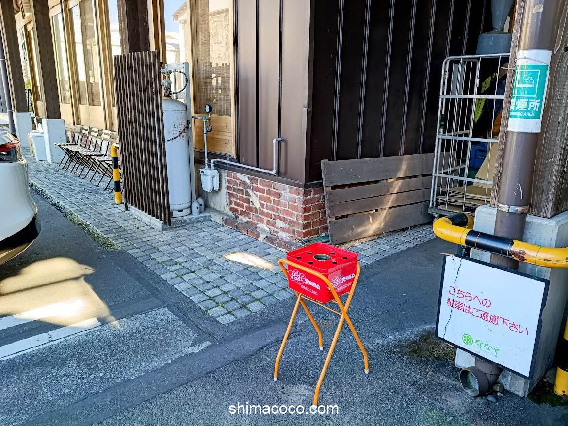 喫煙所はお店の外にあります。