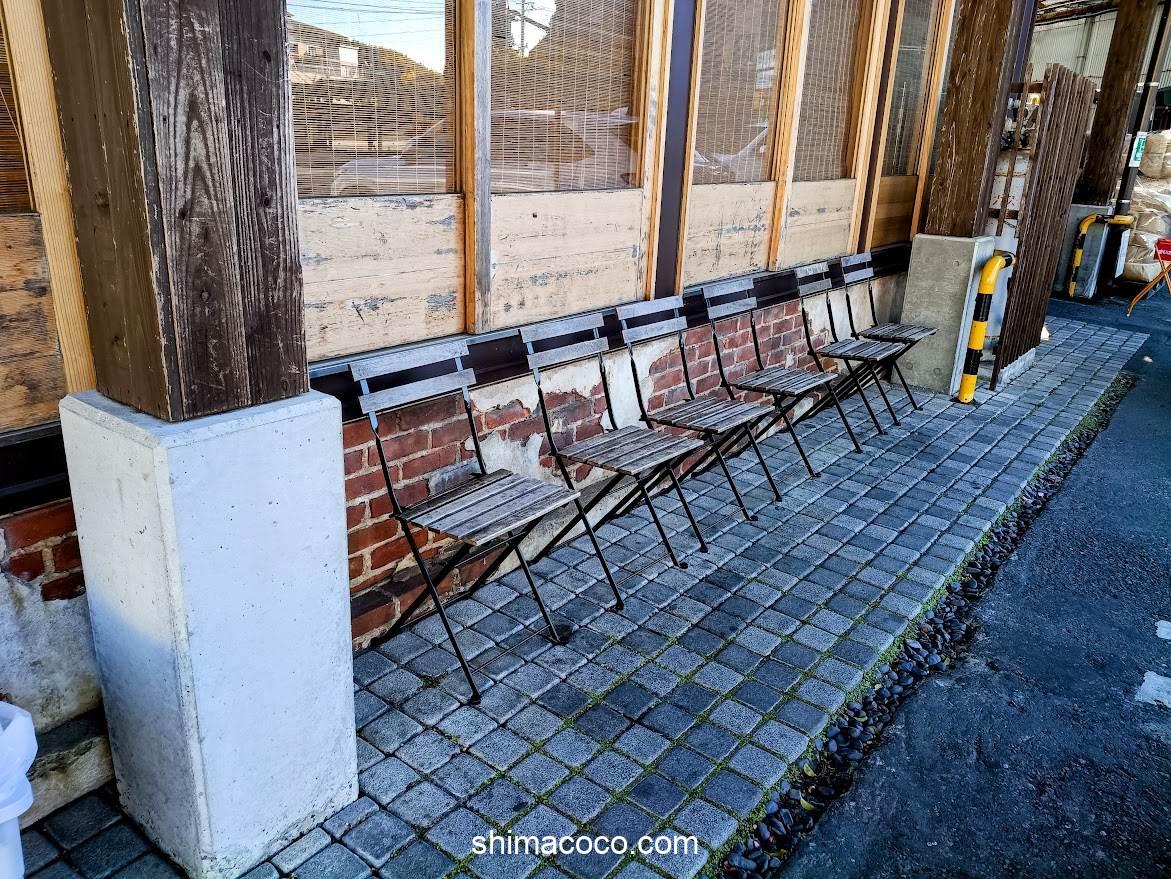 お店の外にイスが6脚並んでいます。