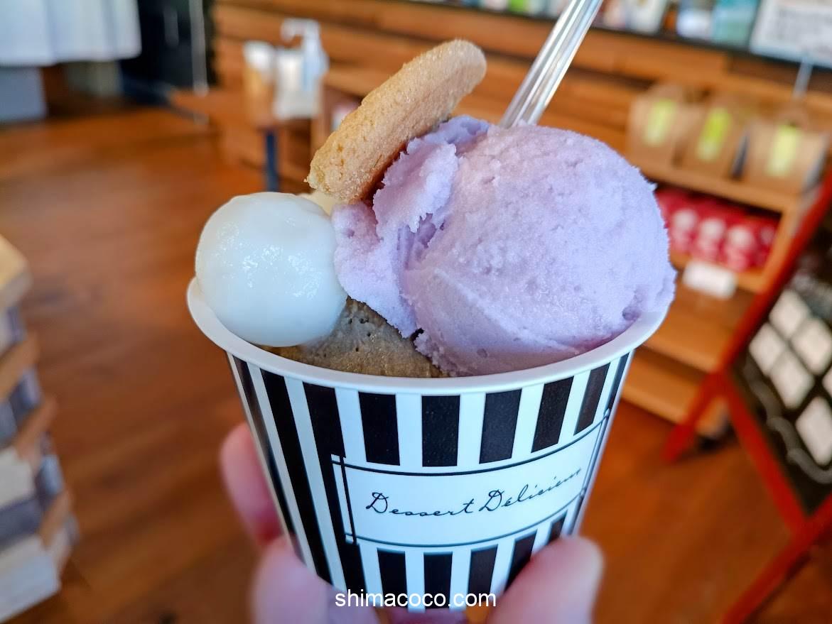 モチモチの白玉にジェラートをのせて食べるのもおすすめ