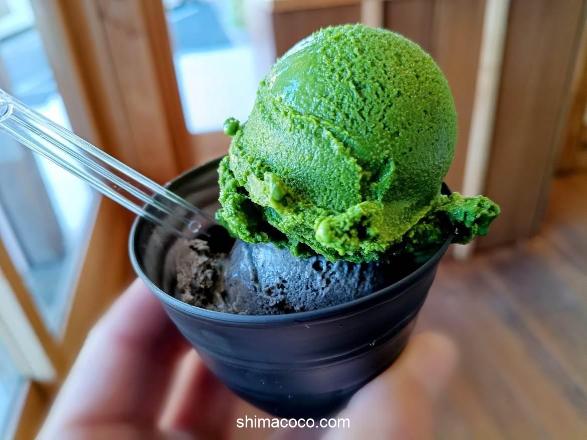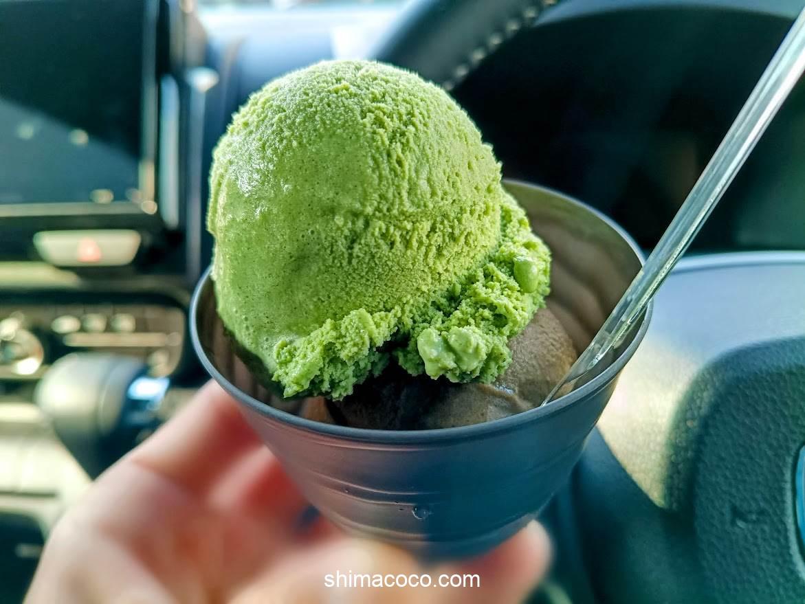 世界一濃い抹茶のジェラートの7番とチョコのダブルカップ🍨