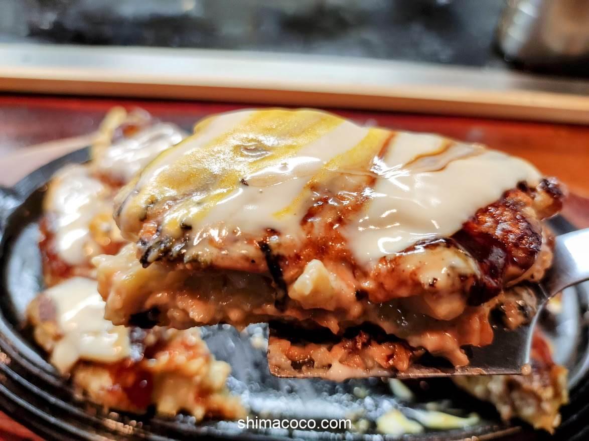 ヘラを使ってガツガツと豪快に切ってハフハフとほおばる瞬間がたまらないです。