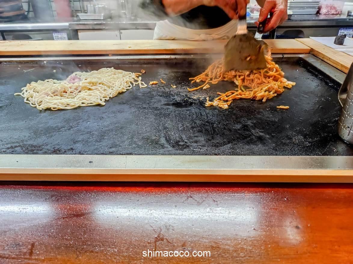 目の前で「お好み焼き」や「焼きそば」をジュージューと焼いていく様子が見れる