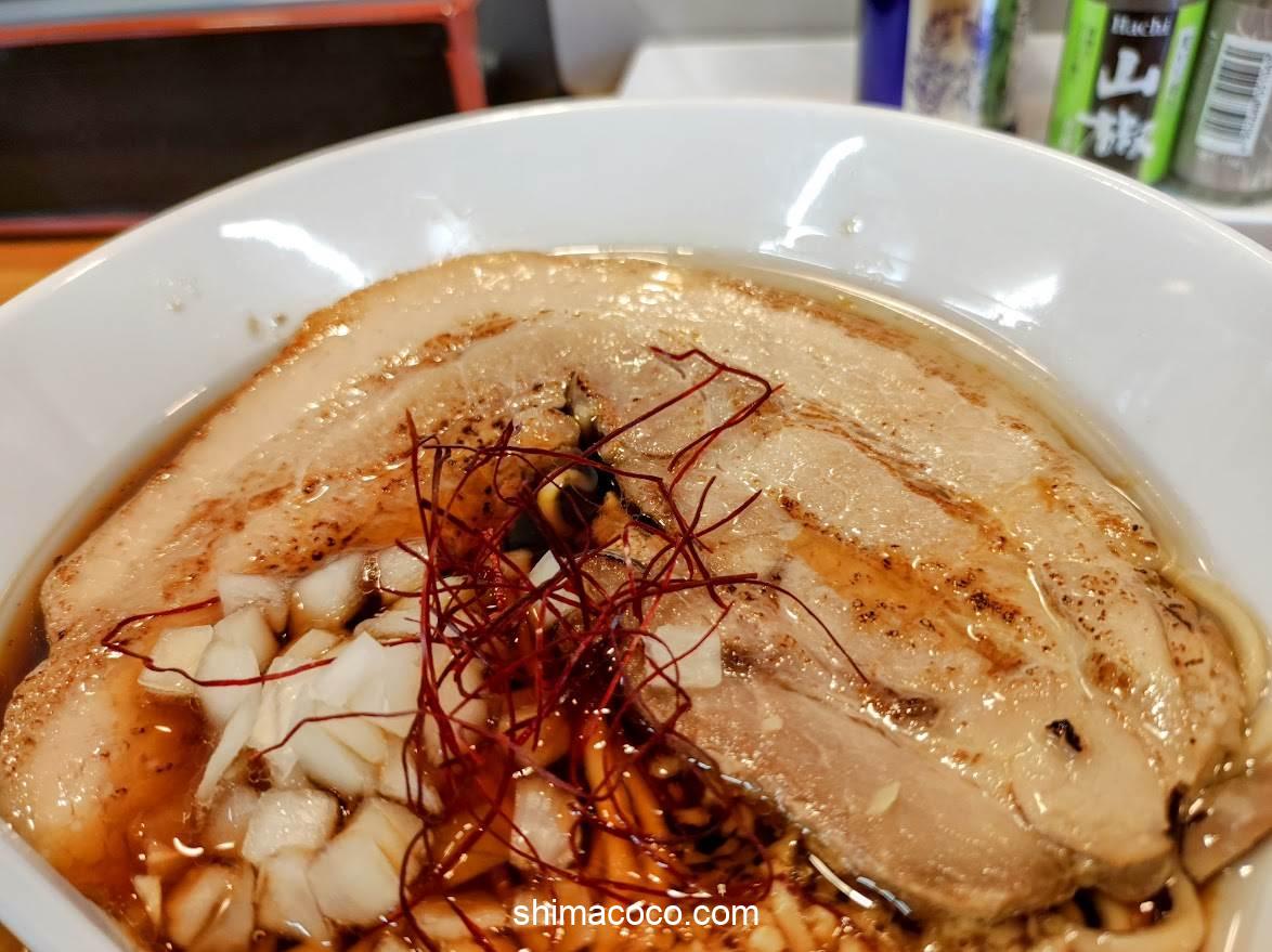 チャーシューは仕上げにバーナーで炙って香ばしさをプラスしています。