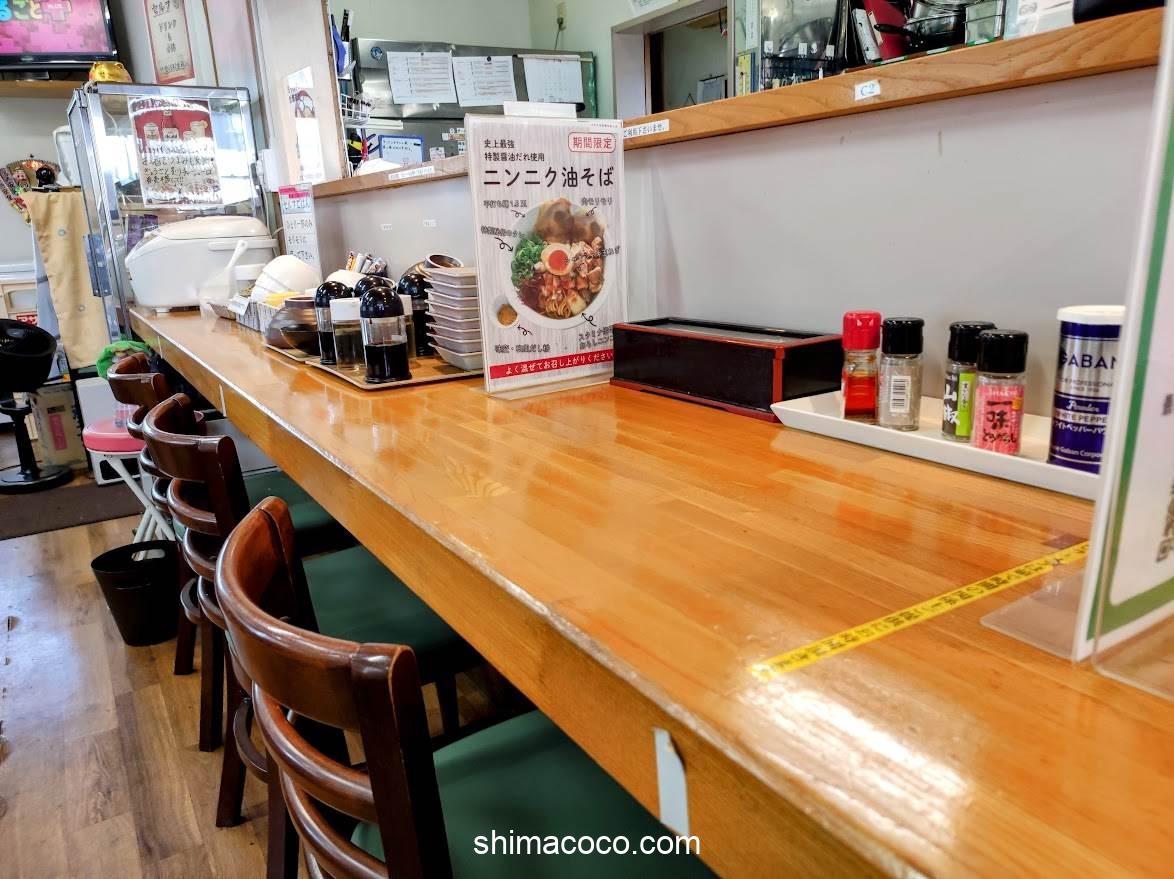 カウンター席のスペースは「ひとり×2」です。