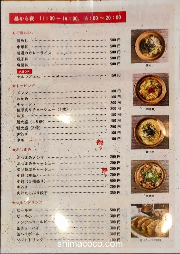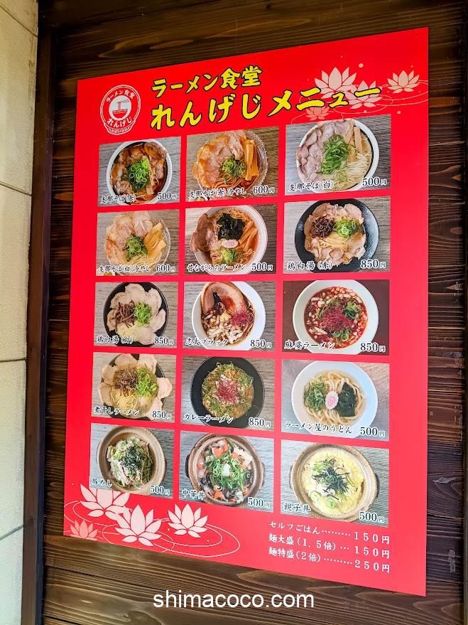 ラーメン食堂れんげじのメニューをご紹介します。