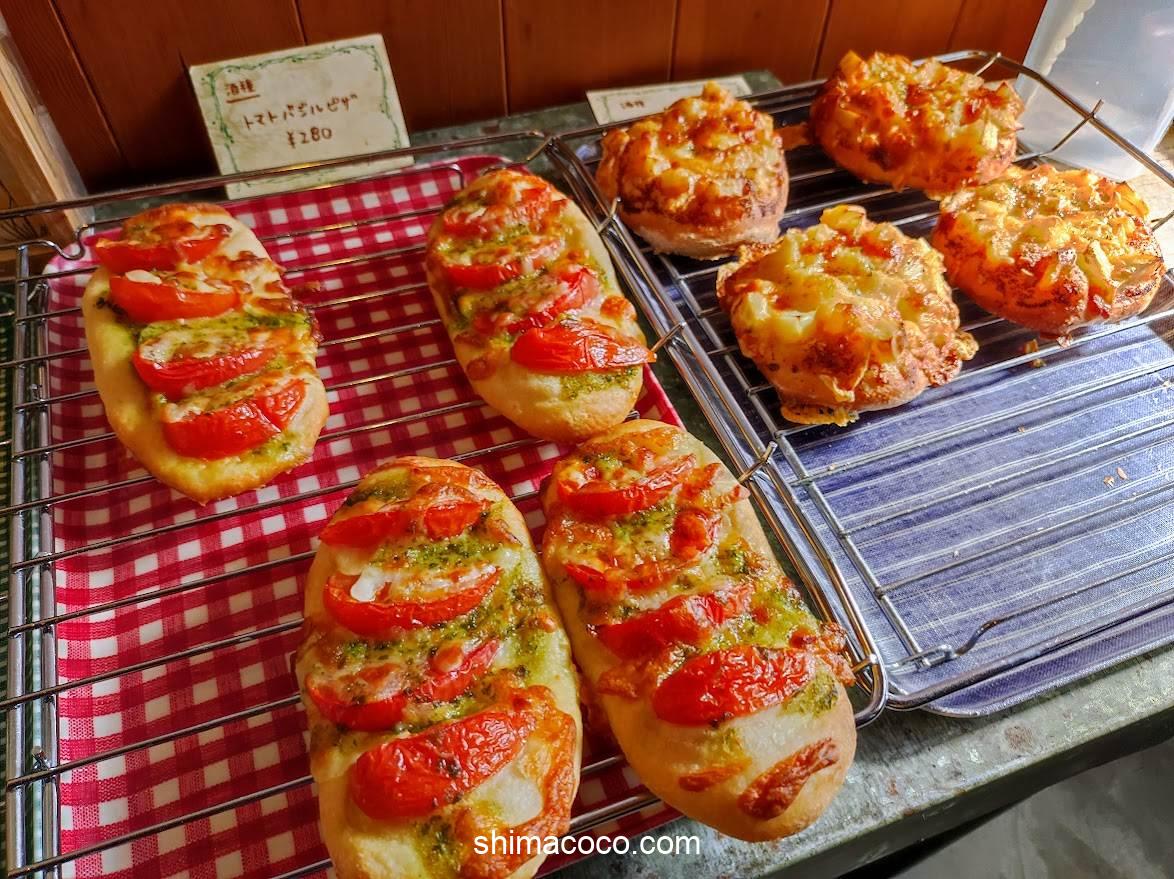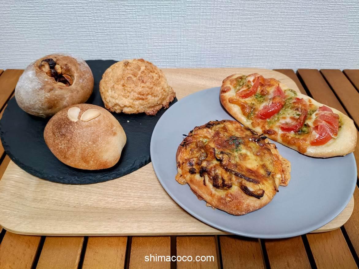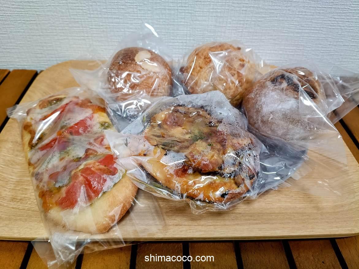 「クリームパン」「メロンパン」「トマトバジルピザ」など全部で5個購入しました。
